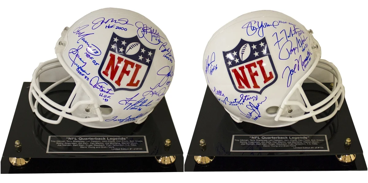 Signed AND inscribed by ALL 18 Living NFL Quarterbacks who have been inducted into the NFL Hall of Fame!